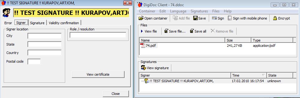 В Эстонии с 2000 года вступил в силу закон о цифровых подписях, которые стали юридически равноценны обычным рукописным. Вскоре была создана и техническая основа - компания SertifitseerimisKeskus (буквально - «центр сертификации») принадлежащая банкам и телекоммуникацонным операторам (а не государству, представляете себе!) и схема обмена данными по X.509 стандарту. Эта статья расчитана в большей мере на программистов.