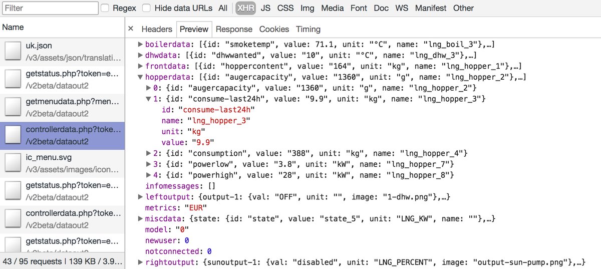 Котёл подключается по wi-fi к интернету к порталу stokkercloud.dk, где можно посмотреть как публичную информацию разных котлов в мире, так и залогиниться в админку своего котла (об этом ниже). Админка кстати написана на ангуляре, а бэкэнд на php