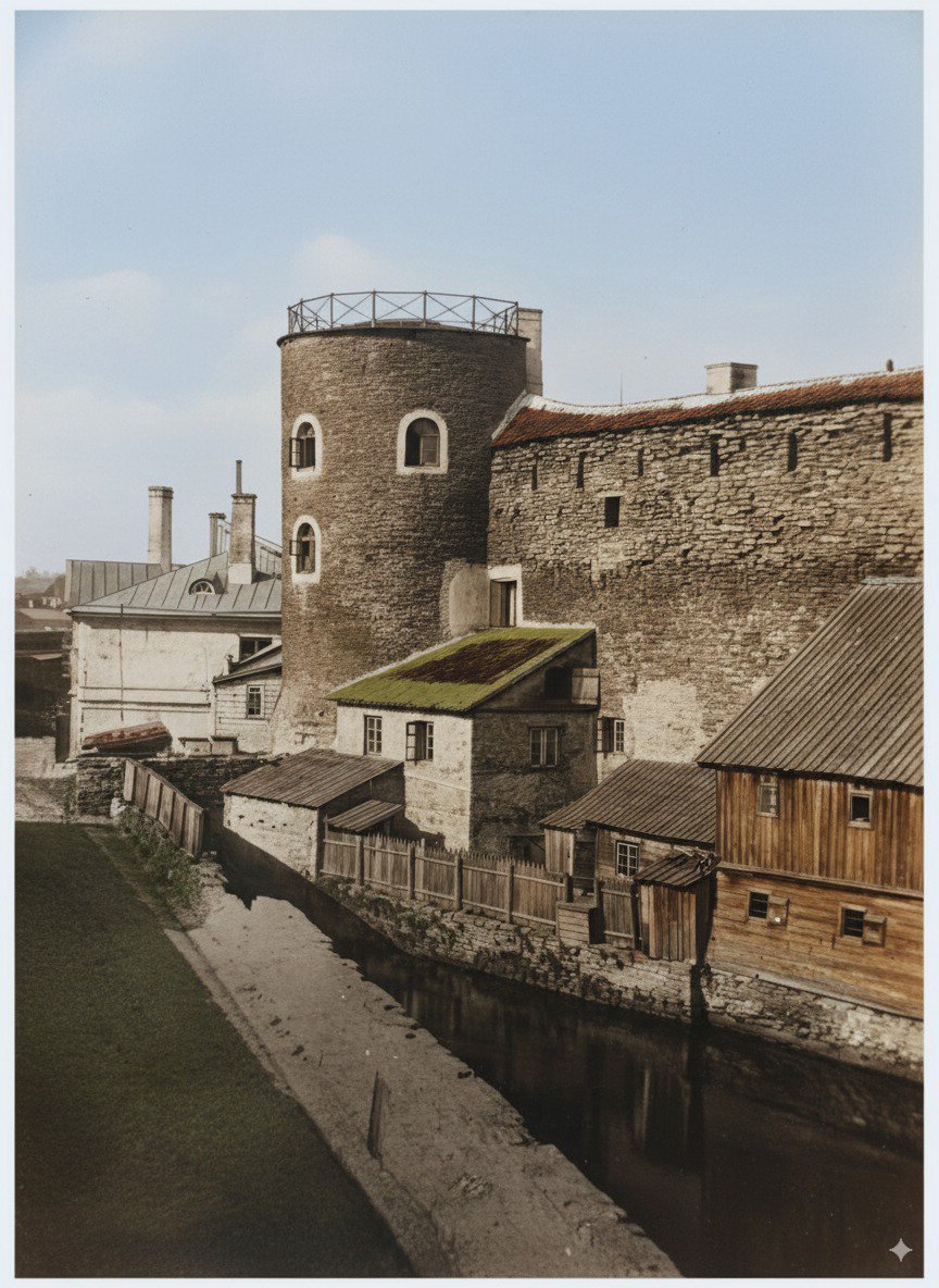 Исследовал для своей рпг игры по Таллинну старинные фотки например башня крепостной стены Hinketorn что рядом с макдаком видимо сфоткана была когда еще было видно саму стену (не очень в курсе - там был ров?). Сейчас по юго-восточной и южной части трудно что-то найти.