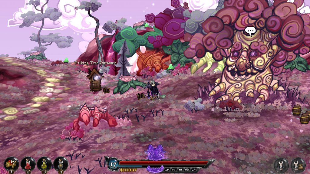 Ко всему этому герой путешествует между локациями при помощи туалетной кабинки, ненужные вещи превращаются в деньги при помощи мясорубки, подсказки по квестам получаются из печенек-судьбы, а детишки просто закидываются в мешок что-бы не возиться с возвращением каждого.