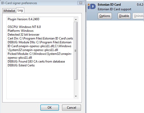 Но глядя как это тянется c 2006 года в Opera, очевидно что это будет долго. Впрочем Firefox уже умеет использовать onepin-opensc-pkcs11.dll как с помощью SK'шного хака, так и с помощью плагина EstEID XPCOM v0.4 написанного в RIA и Smartlink. В результате имеем красивую картинку в Firefox и нет нужды читать страшные мануалы по копированию dll-файлов и ошибок «Teie arvutisse on vaja installeerida PKCS#11 ohjurprogramm!»