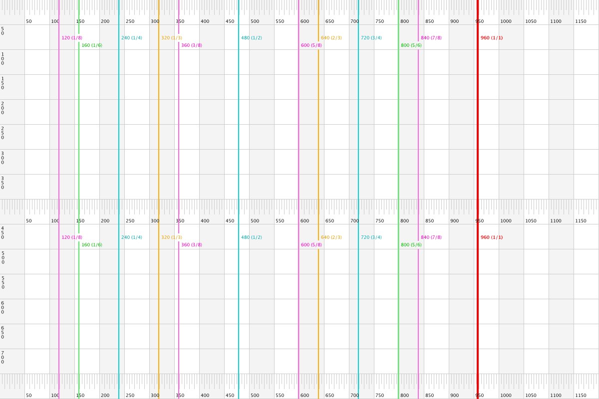 Blueprint - Полотно 950px с вертикальной сеткой. Последние элементы имеют класс last
